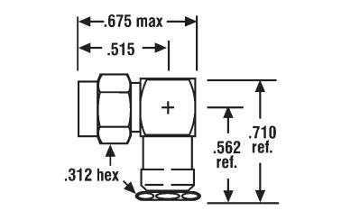 Connector, military, coaxial, SMA(m), right angle plug, clamp, for flexible cable RG55, 58, 141, 142, 223, 303,400, LRM195, 50 Ohm, F= DC-18 GHz, Vrms= 500 V